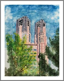 8月の早朝スケッチ会は熱中症警戒アラートが発表されため中止、また新宿中央公園は雨天中止となりましたので、自宅で描く自由スケッチ会となりました。
