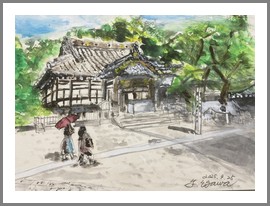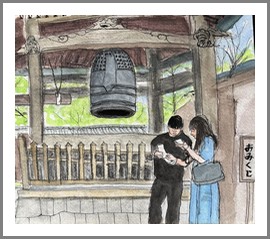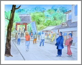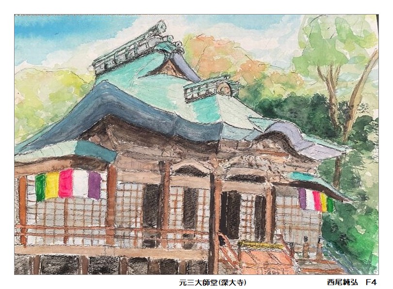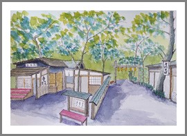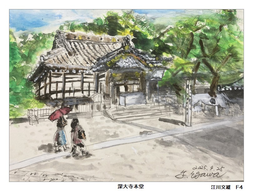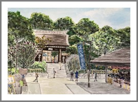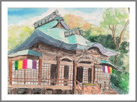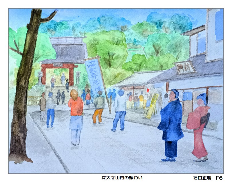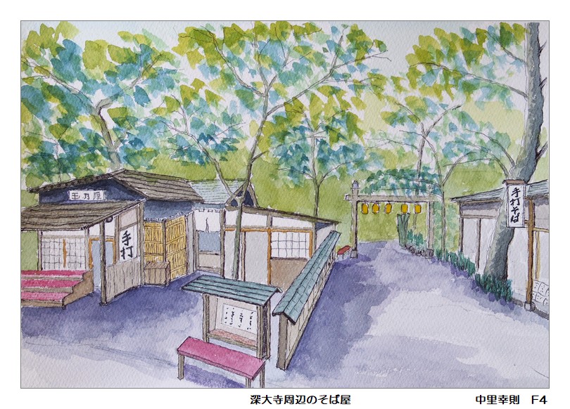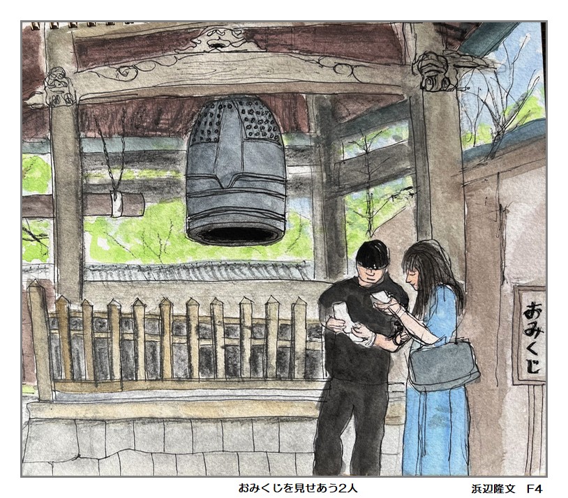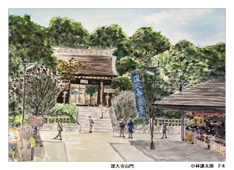 当日は待ちわびたかのような素晴らしいスケッチ日和!メンバー同士、久しぶりの再会に話も弾みます。深大寺山門での記念撮影から始まり、境内を散策しながら、御堂や鐘楼、趣のある茶屋風景など、それぞれの**「描きたい!」**という気持ちを自由に表現しました。