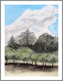 友人から借用した写真で緑の木々の表現にチャレンジ・・むつかしい